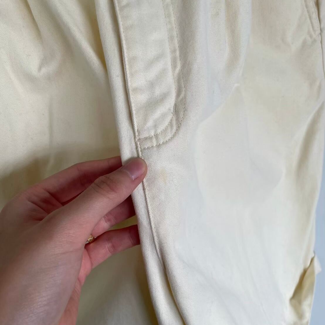 股下にうっすらとオレンジ色のシミがあります。(写真16,17枚目参照)古着商品であることをご理解の上、ご購入の程よろしくお願い致します。