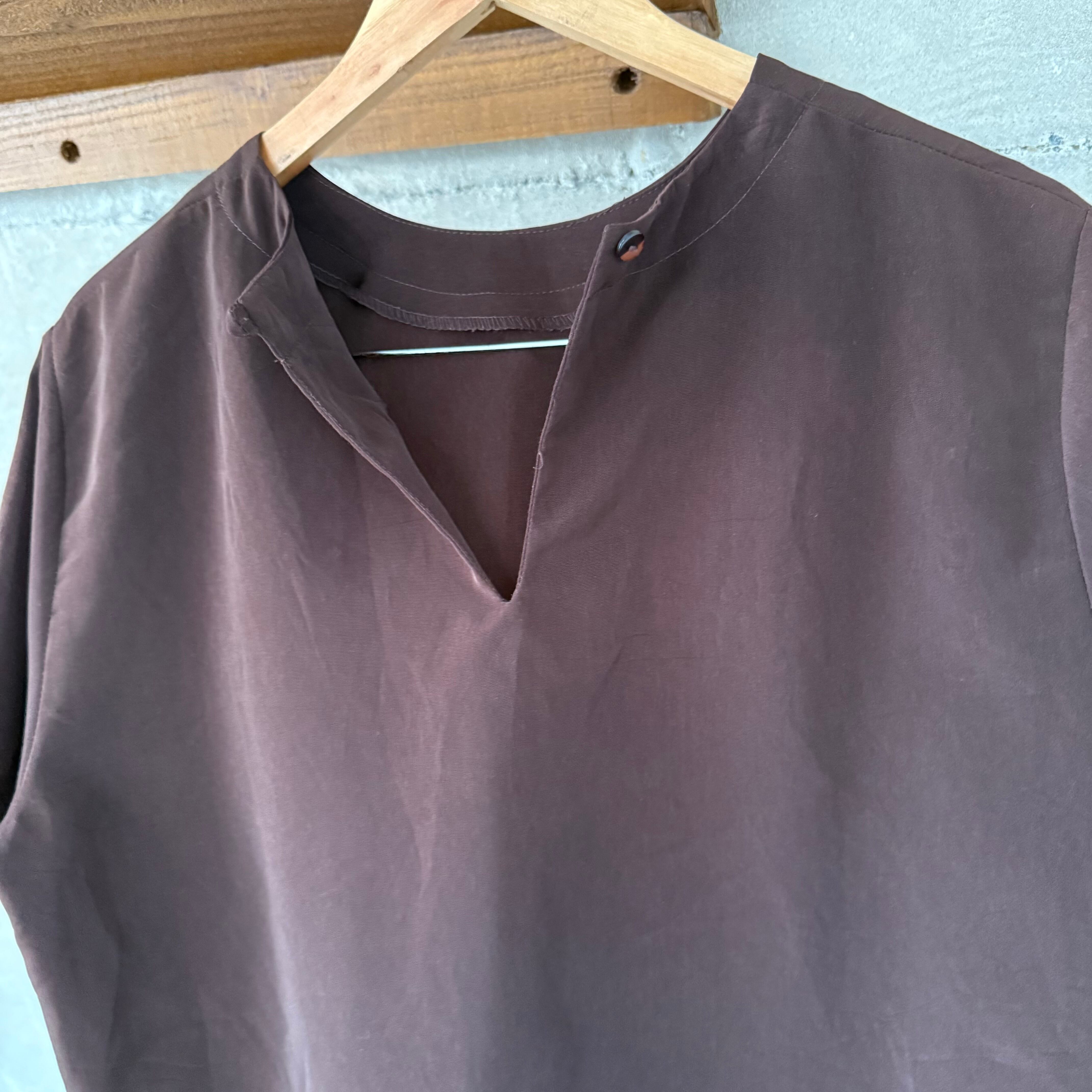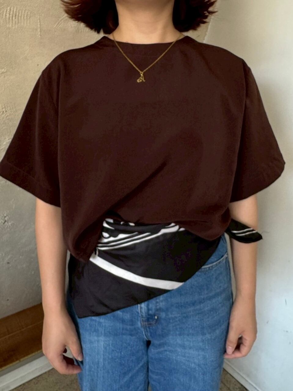 深みのあるブラウンが大人っぽいボクシーシルエットのTシャツ。