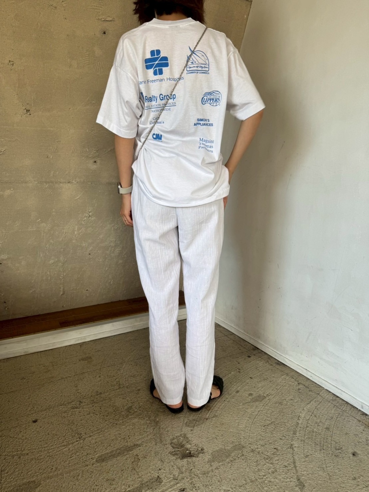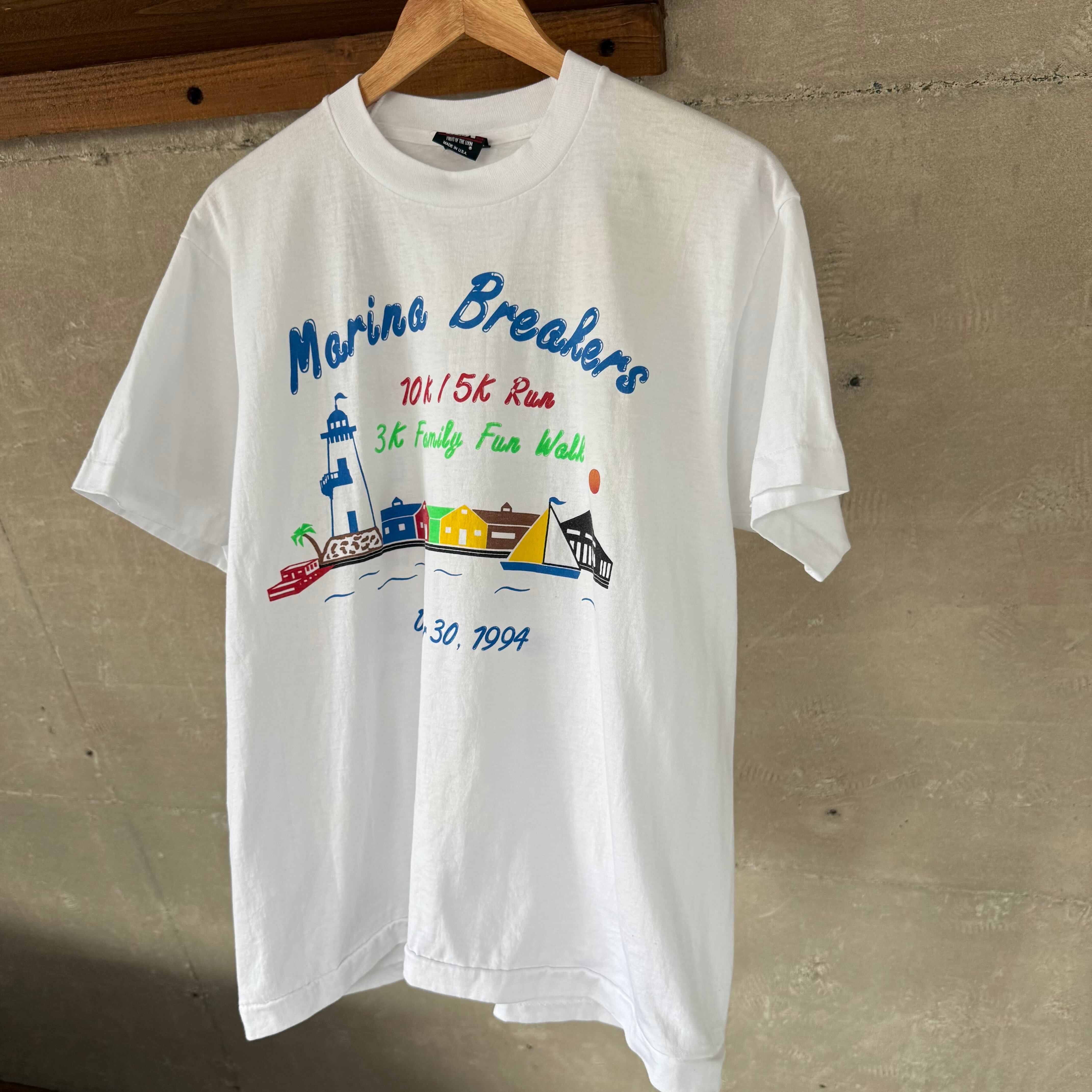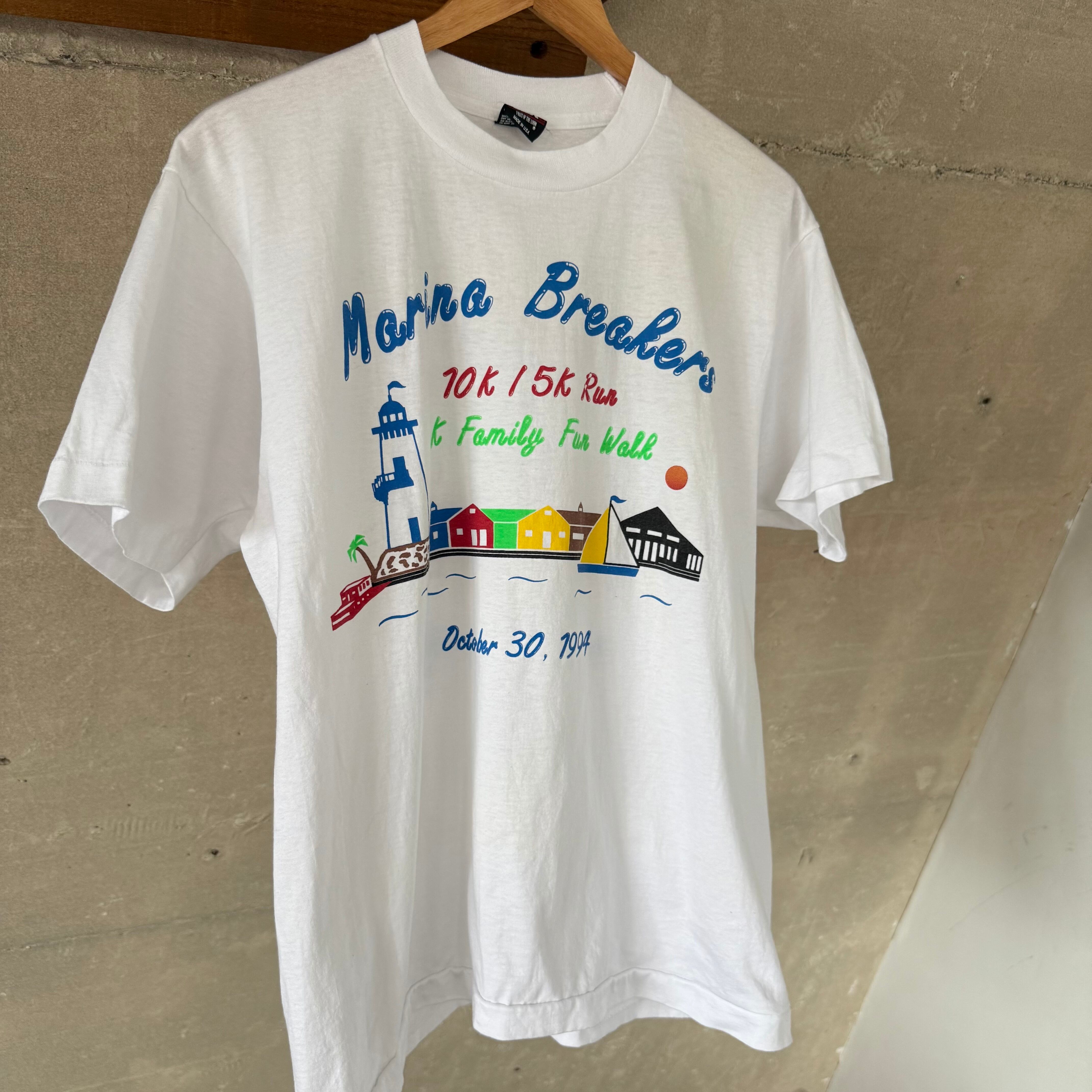 レトロなマリンイベントのグラフィックがプリントされたTシャツ。