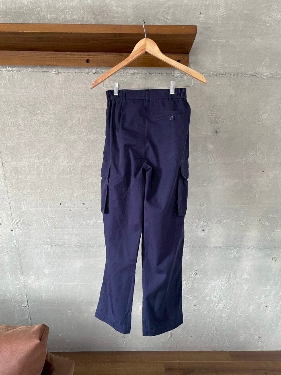 両サイドの大きなポケットが特徴のカーゴパンツ。
