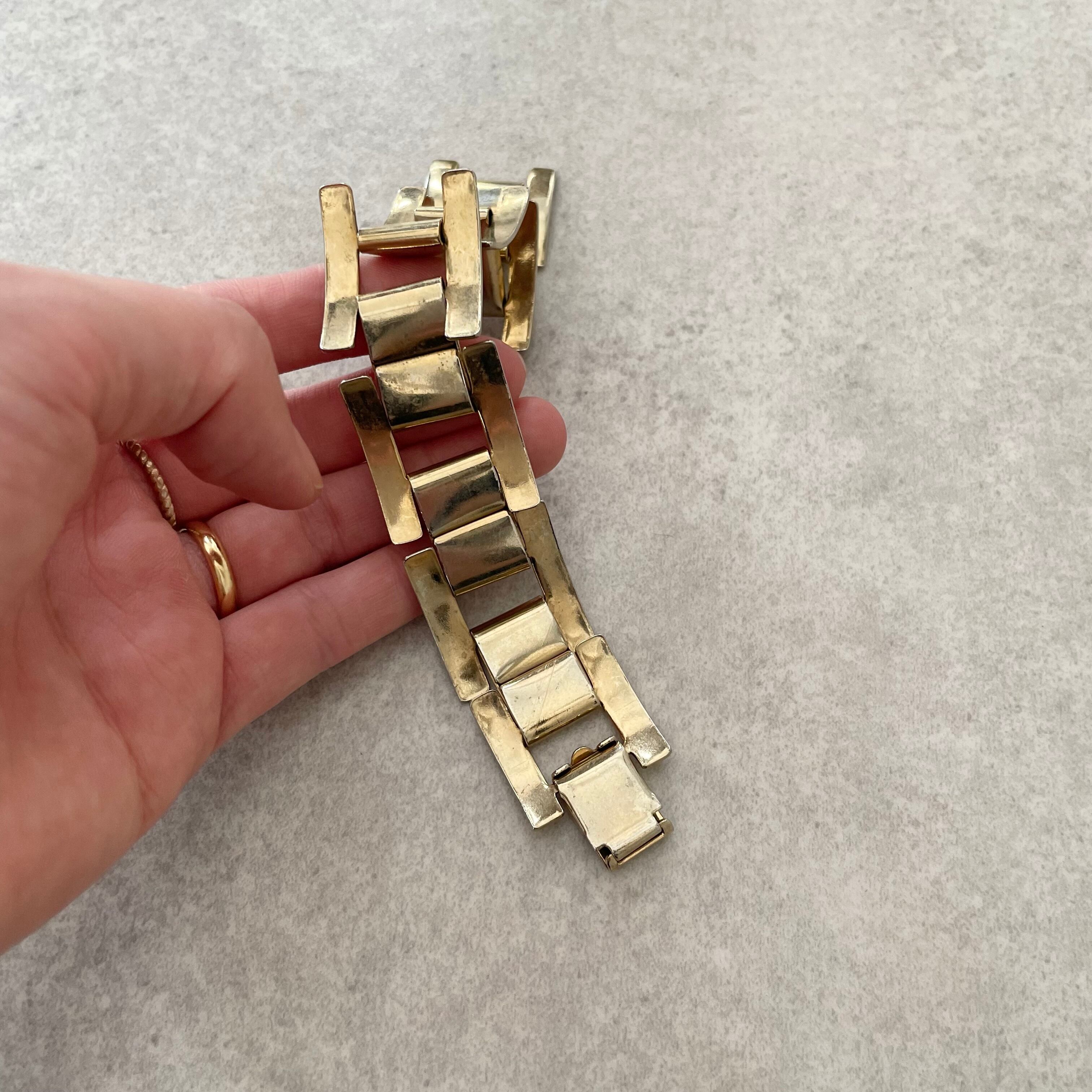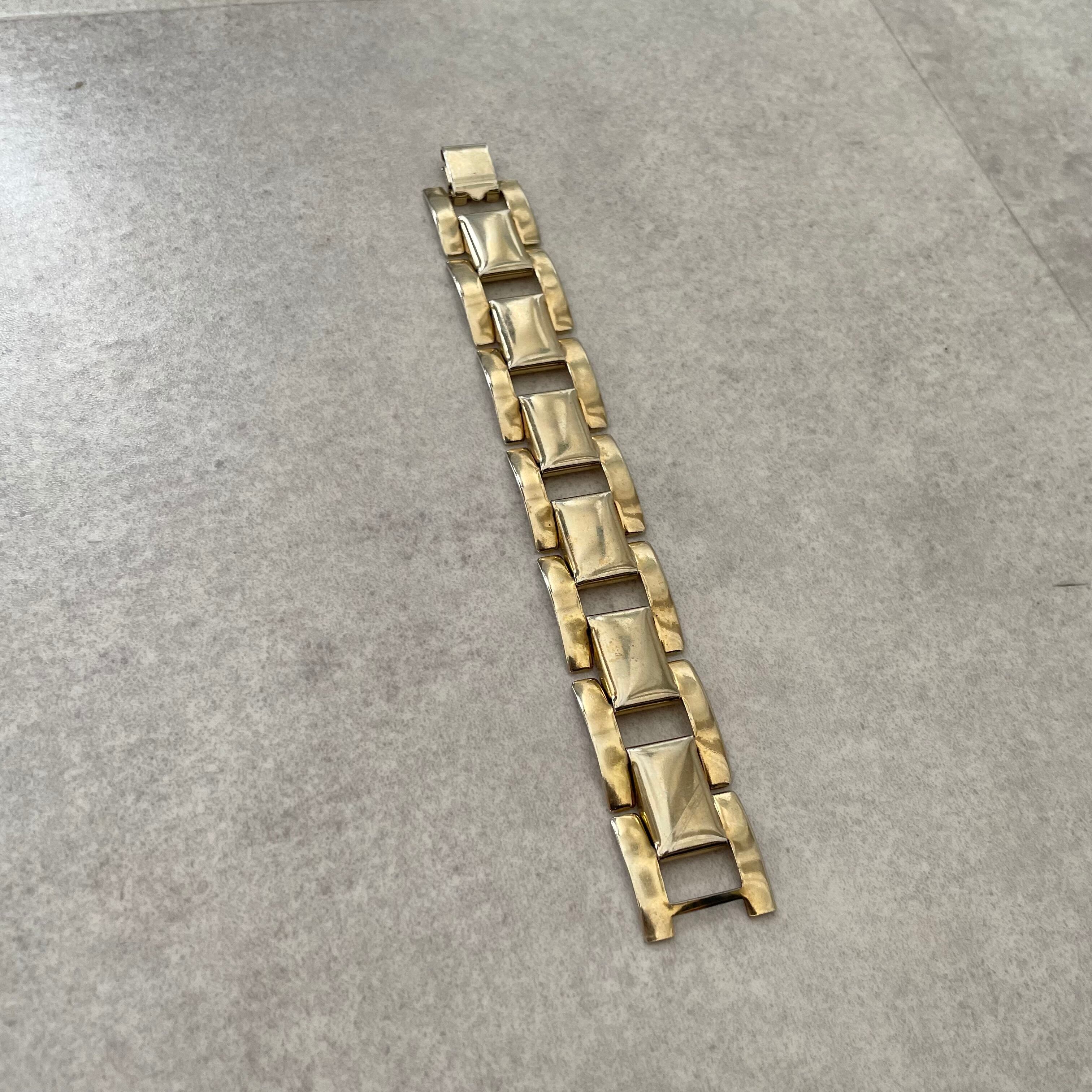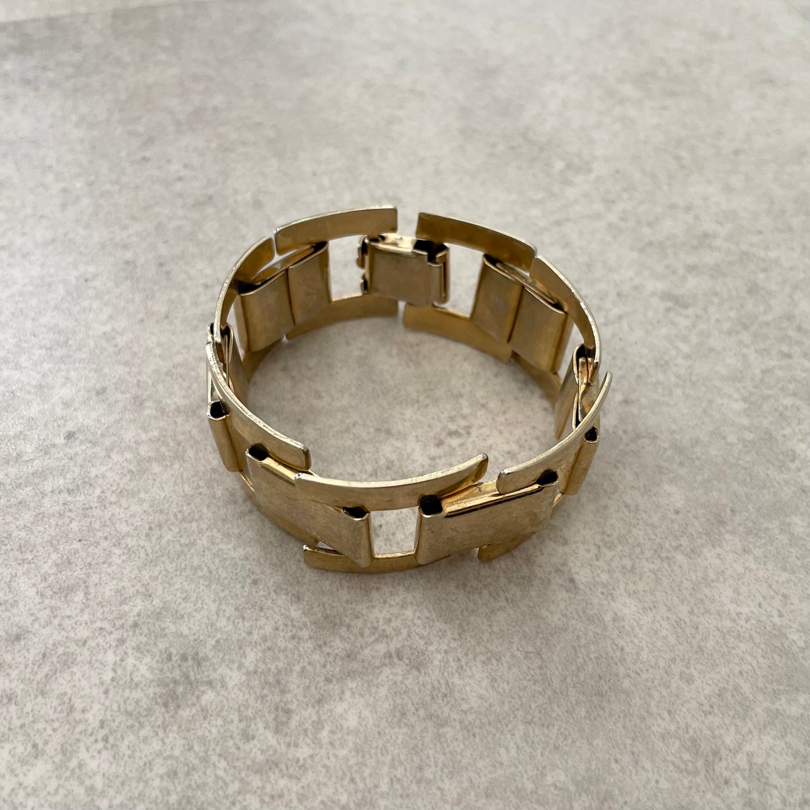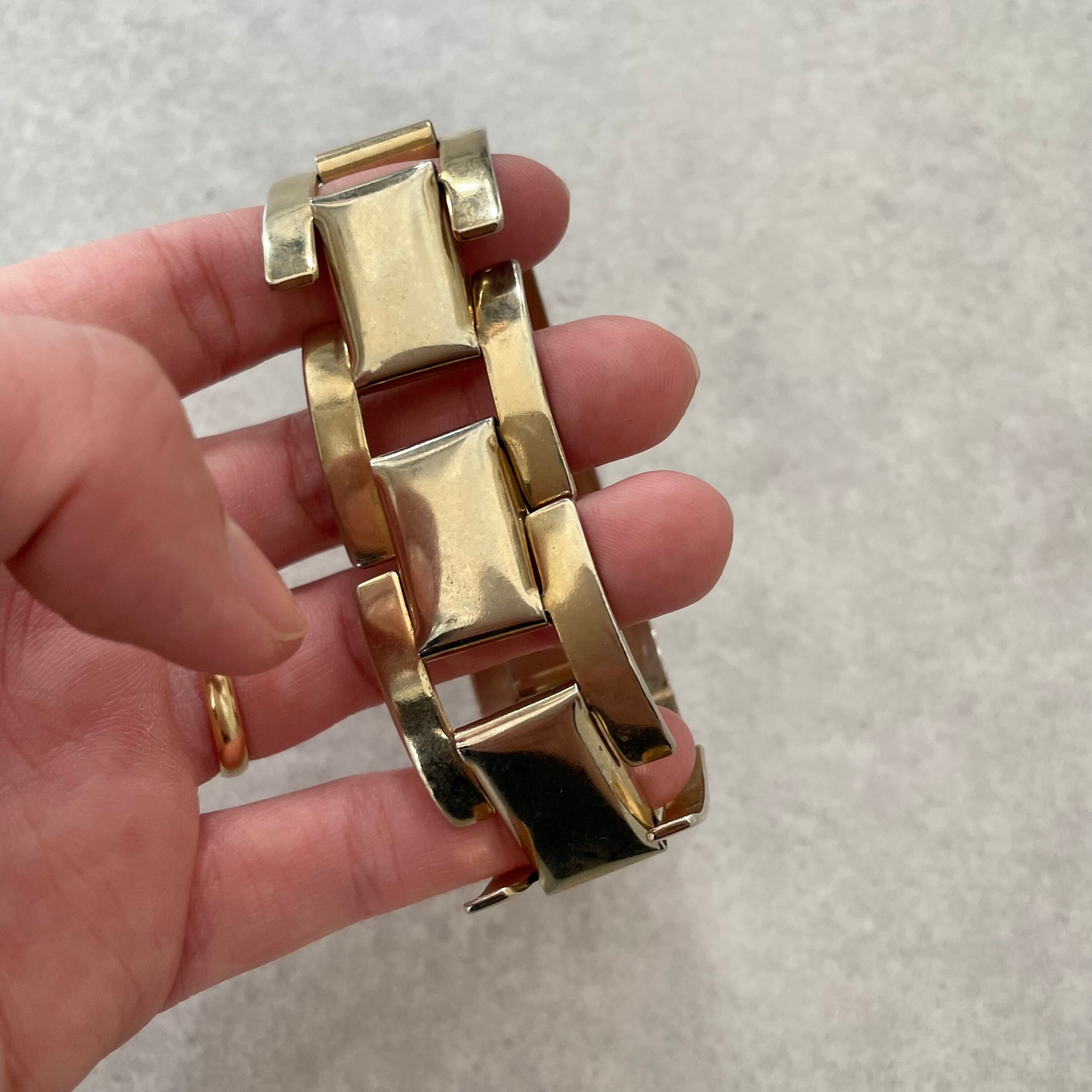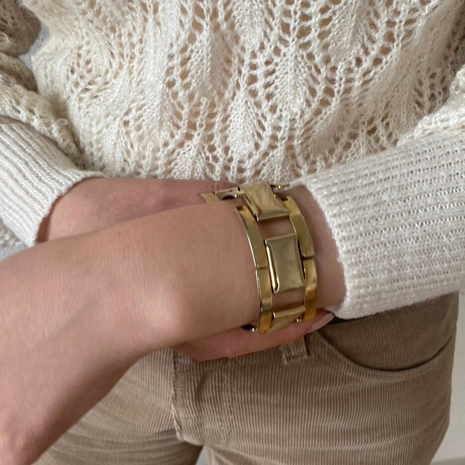 個性派デザインのゴールドのブレスレット。