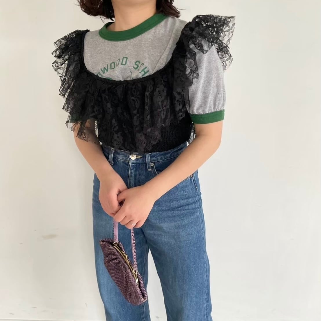 レースのラッフルがついたビスチェ。